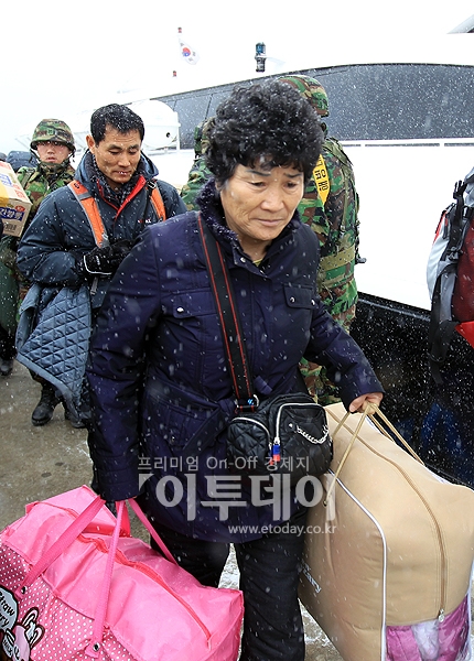 풍랑주의보가 해제 되면서 5일만에 여객선운행이 재개된 27일 오후 인천시 옹진군 연평도 주민들이 연평도 들어오고 있다.