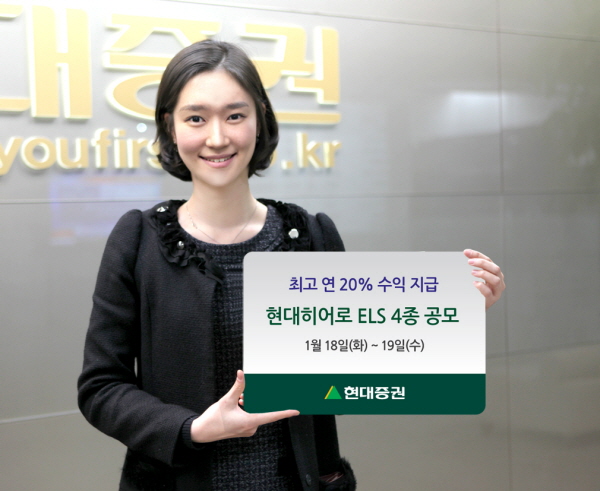 현대증권은 18~19일 이틀간, 원금보장형 ELS 1종, 원금비보장형 ELS 3종 등 총 4종의 상품을 200억원 규모로 공모한다.
