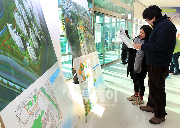 한국토지주택공사 LH가 서울강남·서초 보금자리주택 신혼부부 특별공급 1순위 본청약 접수를 시작한 20일 오전 서울 강남구 자곡동 더 그린홍보관에 청약 접수를 하려는 신혼부부가 자료를 살펴보고 있다.