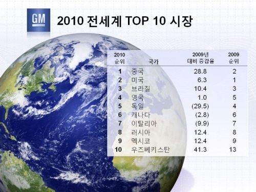 GM의 지난해 판매량은 전년 747만7178대 보다 12.2% 증가한 수치다. 특히 GM은 신흥시장 5곳에서 전년 대비 두 자릿수 판매 증가율을 보였다. 중국, 브라질, 러시아, 멕시코, 우즈베키스탄 등에서다.