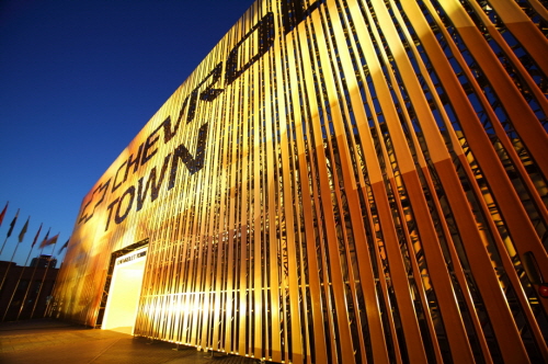 '쉐보레 타운'은 3541㎡(약 1071평) 면적의 5층 규모 건물이다. 전면과 측면 모두 쉐보레 로고와 이니셜로 장식돼 있다. 글로벌 브랜드 쉐보레의 국내 출범을 상징화하고 있다는 게 GM대우 측 설명이다.