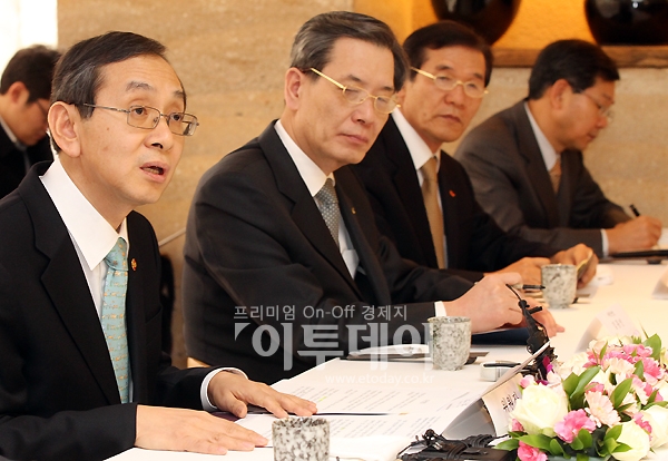 김동수 공정거래위원장이 10일 서울 팔래스호텔에서 건설업체대표들과 함께 동반성장 확산을 위한 간담회를 갖고 모두발언을 하고 있다.