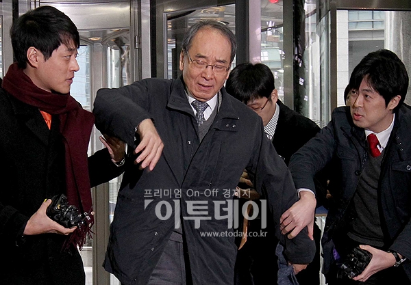 [포토]기자들 뿌리치는 김병주 서강대 명예교수