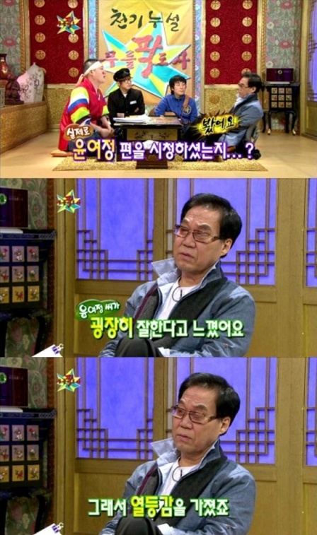 지난 16일 방송된 MBC TV '황금어장-무릎팍도사'에 출연한 조영남은 "윤여정이 출연한 걸 봤다. 굉장히 잘한다고 느꼈다"고 칭찬했다.