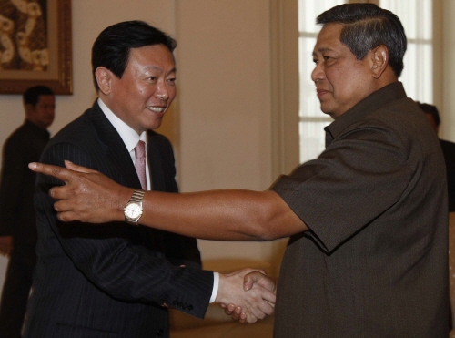 ▲롯데 신동빈 회장(왼쪽)은 22일 오후, 인도네시아 자카르타 대통령궁을 방문해 수실로 밤방 유도요노 인도네시아 대통령을 예방하고 현지 투자 확대 방안에 대해 논의 했다.