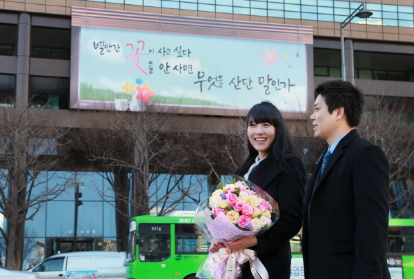 문안은 시인 이진명의 '젠장, 이런 식으로 꽃을 사나'의 한 구절인 '별안간 꽃이 사고 싶다 꽃을 안 사면 무엇을 산단 말인가'로 결정됐다.