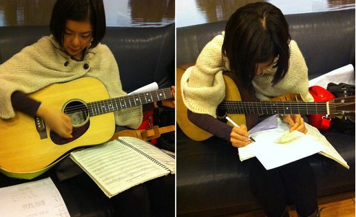 김형석은 3일 자신의 트위터에 "밤늦은 시간. 악기 녹음 할 때 재인이는 스피커의 커다란 음악 소리에도 불구하고 구석에 가만히 앉아 조용조용 글을 쓰고 악보를 그린다. 소박한 천재 재인이"라는 글과 함께 사진을 게재했다.