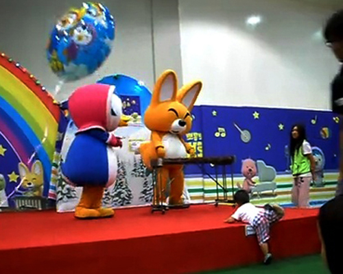최근 각종 인터넷 게시판에는 '뽀로로 공연 도중 흥분한 관객 무대난입'이라는 제목으로 사진이 올라오고 있다.