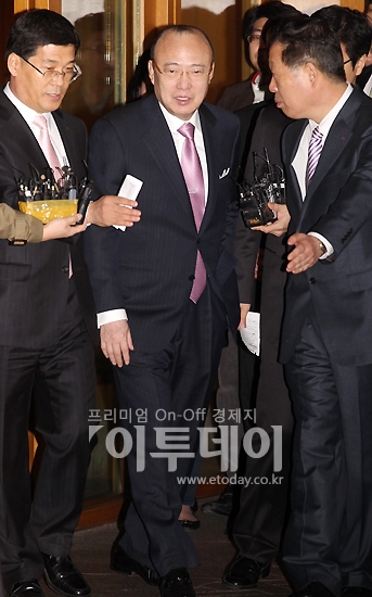 김승연 한화 회장이 10일 오후 서울 용산구 한남동 그랜드하얏트 서울호텔에서 허창수 회장 취임 이후 처음으로 열린 전국경제인연합회 회장단 회의에 참석하기 위해 들어서고 있다.