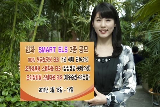‘한화스마트ELS 591호’는 저금리 시장환경하에서 안정성과 수익성을 겸비한 저위험 ELS 상품으로 ‘KOSPI200지수’를 기초자산으로 하며 최대 연16.2% 수익이 지급되는 1년 만기 상품이다.