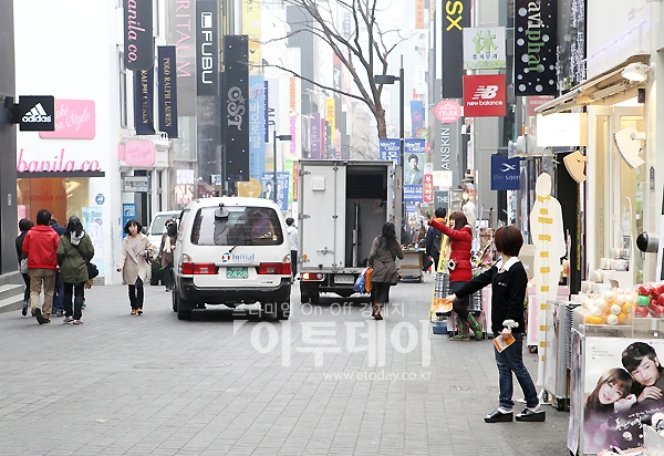 일본의 대지진 여파로 일본인 관광객들이 발길을 돌린 14일 오전 서울 명동거리가 평소와는 달리 한산한 모습을 보이고 있다.