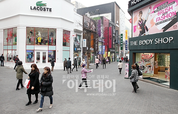 일본의 대지진 여파로 일본인 관광객들이 발길을 돌린 14일 오전 서울 명동거리가 평소와는 달리 한산한 모습을 보이고 있다.