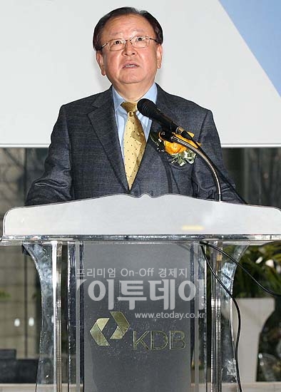 강만수 신임 산은금융지주 회장이 14일 오후 여의도 산업은행 본점에서 열린 취임식에 참석해 취임사를 하고 있다.