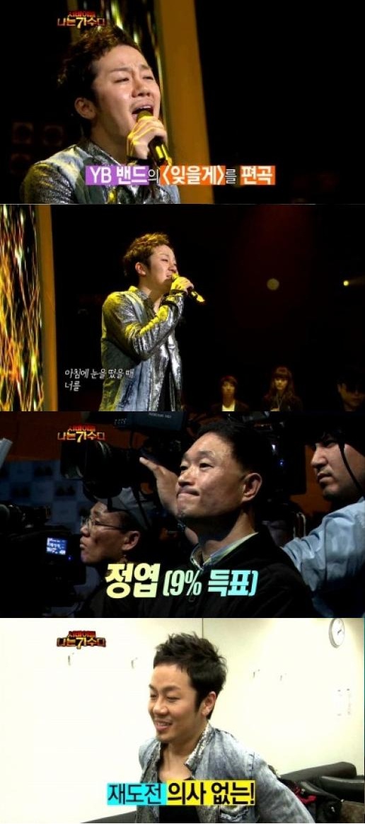 이날 정엽은 윤도현의 ‘잊을게’를 부르게 됐고, 자신의 스타일로 편곡해 멋진곡으로 소화해냈다. 그는 곡을 배정받은 직후에 “평소와 전혀 다른 록 스타일을 해보고 싶었기 때문에 만족한다”며 웃어보여 시청자들의 호평을 받았다.