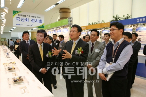 '부품 국산화 전시회'는 삼성전기의 전자부품 생산에 필요한 원자재와 설비 중에서, 핵심 품목 50개를 전시해, 경쟁력 있는 국내 협력회사들이 국산화 과제에 적극 동참하도록 마련한 자리이다.
