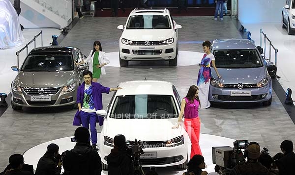 2011 서울 모터쇼가 31일 프레스데이를 시작으로 다음달 1일부터 10일까지 고양시 킨텍스에서 화려한 막을 연다. 31일 폭스바겐 전시장에서 럭셔리 차량들이 공개되고 있다. 국내 최대 모터쇼인 2011 서울 모터쇼에는 전세계 35개의 완성차 업체와 모두 8개국 139개 자동차 기업이 참여해 신차들과 신기술의 대전을 펼친다.