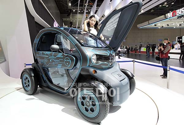 2011 서울 모터쇼가 31일 프레스데이를 시작으로 다음달 1일부터 10일까지 고양시 킨텍스에서 화려한 막을 연다. 31일 르노삼성자동차 부스에서 모델이 전기차 ‘트위지 Z.E' 컨셉트카를 소개하고 있다 .국내 최대 모터쇼인 2011 서울 모터쇼에는 전세계 35개의 완성차 업체와 모두 8개국 139개 자동차 기업이 참여해 신차들과 신기술의 대전을 펼친다.