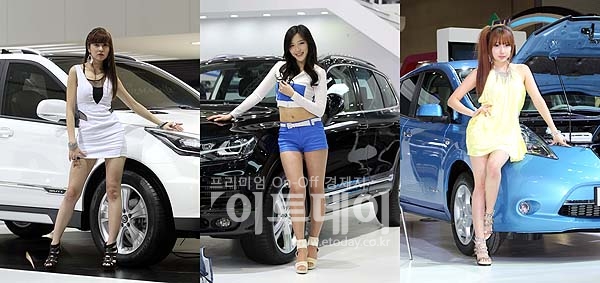 2011 서울 모터쇼가 31일 프레스데이를 시작으로 다음달 1일부터 10일까지 고양시 킨텍스에서 화려한 막을 연다. 31일 전시장을 빛내는 모델들이 다양한 포즈를 취하고 있다. 국내 최대 모터쇼인 2011 서울 모터쇼에는 전세계 35개의 완성차 업체와 모두 8개국 139개 자동차 기업이 참여해 신차들과 신기술의 대전을 펼친다.