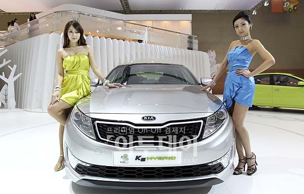 2011 서울 모터쇼가 31일 프레스데이를 시작으로 다음달 1일부터 10일까지 고양시 킨텍스에서 화려한 막을 연다. 31일 모델들이 기아자동차의 K5 하이브리드를 소개하고 있다. 국내 최대 모터쇼인 2011 서울 모터쇼에는 전세계 35개의 완성차 업체와 모두 8개국 139개 자동차 기업이 참여해 신차들과 신기술의 대전을 펼친다.