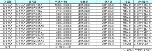 이 가운데 지난달 15일에 발행된 CP(300억원 규모)는 189일물이고 나머지는 모두 91~94일물로 오는 6월 초부터 만기가 도래된다.