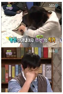 방송작가이자 아내인 한유라가 방송 중 정형돈을 흐뭇하게 바라보다 딱걸린 것.