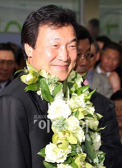 4.27 재보선 분당을에 당선된 민주당 손학규 후보가 27일 오후 당선이 확정된 후 분당 선거사무소에서 지지자들에게 밝게 웃으며 인사하고 있다.