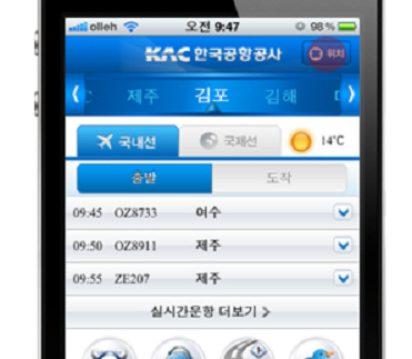 스마트폰 서비스를 위해서는 모바일 사이트(http://m.airport.co.kr)를 입력하거나 모바일 인터넷 페이지에서 한국공항공사 및 해당 공항을 검색해 이용하면 된다.
