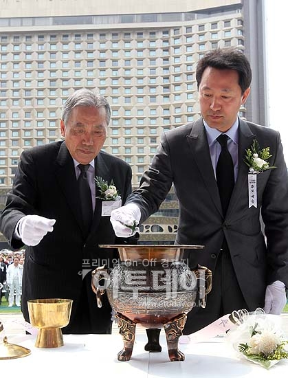오세훈 서울시장이 18일 서울광장에서 열린 '제31주년 5·18 민주화운동 기념행사'에 참석해 호국 영령들과 희생자들을 위로하며 분향하고 있다.