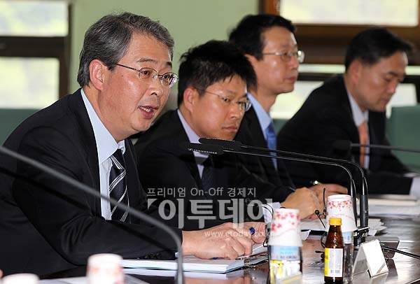 임종룡 기획재정부 제1차관이 23일 오후 정부과천청사에서 열린 물가안정대책회의에서 모두발언을 하고 있다. 이날 회의에서 통신요금 인하방안을 조율한 뒤, 한나라당과의 당정 협의를 거쳐 최종 요금인하 방안을 발표할 예정이다.