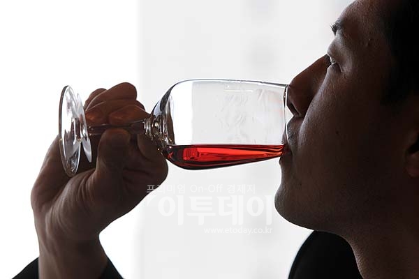 프랑스 농식품 수산부가 주최하는 '제10회 한국 소믈리에 대회' 2차 예선이 24일 오전 서울 플라자 호텔에서 열리고 있다. 대회에 참가한 소믈리에들이 와인을 맛을 음미하고 있다.