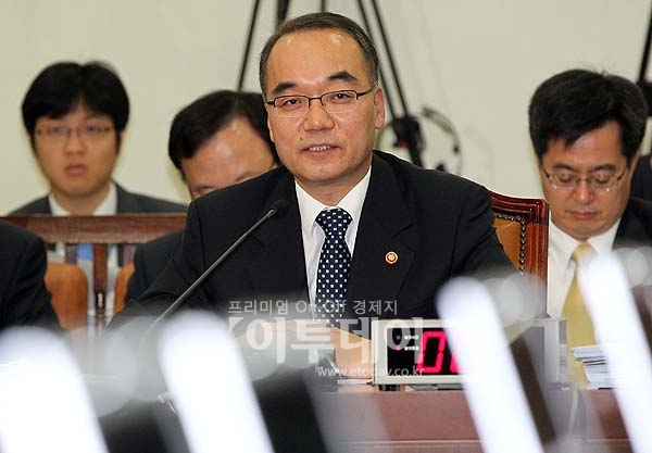 박재완 기획재정부 장관 내정자가 25일 국회 기획재정위원회 인사청문회에서 의원들의 질의에 답하고 있다.