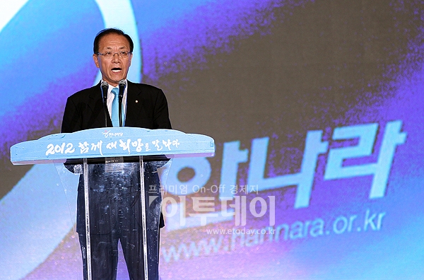 한나라당 황우여 대표최고위원 권한대행이 4일 오후 서울 올림픽 체조경기장에서 열린 '한나라당 제12차 전당대회'에서 인사말을 하고 있다.