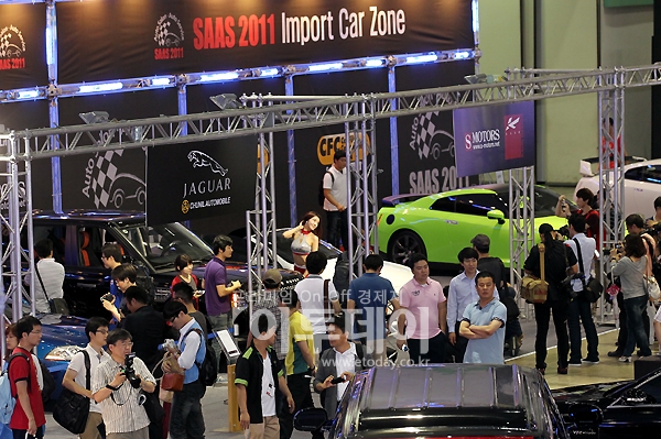 2011 서울오토살롱이 개막한 7일 오후 서울 강남구 삼성동 코엑스에 전시차량을 구경하는 관람객들로 북적이고 있다.
