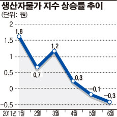 생산자물가가 2년만에 2개월 연속 하락했다.