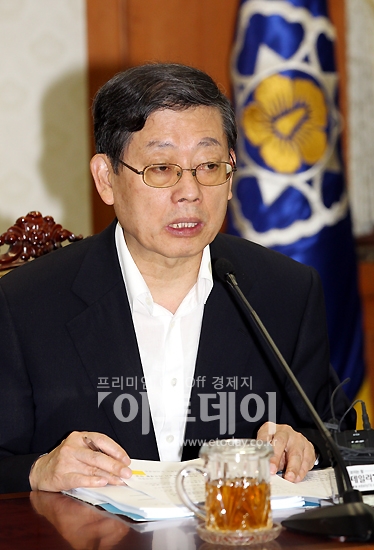 김황식 국무총리가 8일 오전 종로구 세종로 정부중앙청사에서 열린 제1차 서민생활대책점검회의에 참석해 모두발언을 하고 있다.