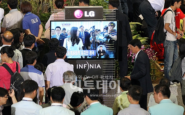 2018년 동계올림픽 개최권을 따낸 평창유치위원회 대표단이 8일 오후 대한항공 전세기편으로 인천공항을 통해 시민들의 열열한 환영을 받으며 귀국하고 있다.