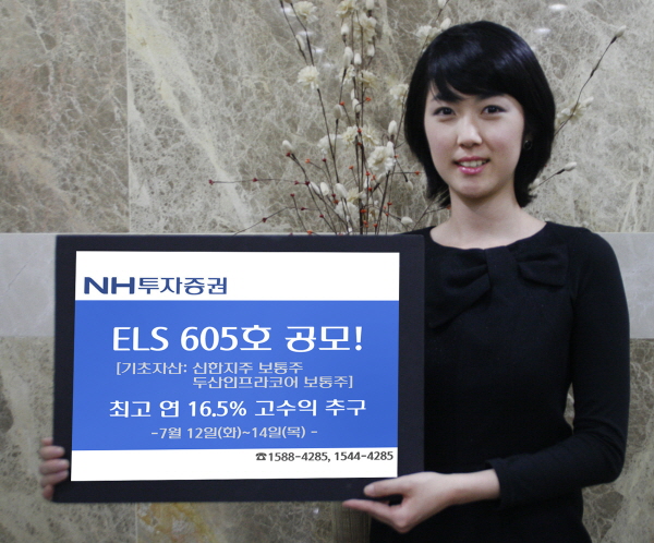'NH투자증권 ELS 605호'는 100만원이상 10만원 단위로 청약할 수 있으며, 발행일 및 최초기준주가 결정일은 7월 15일(금)이다.