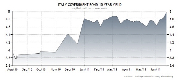 한편 유로존 재정위기 사태는 이탈리아로 급속히 확산되고 있다.