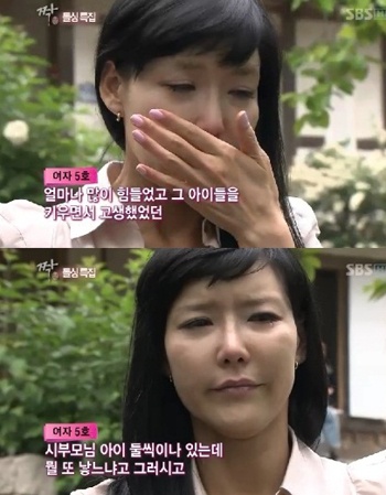 여자 5호는 “남의 아이만 키우다 죽을 일은 없지 않냐”며 “사람들은 내 겉모습만 보고 판단한다”며 눈물을 보였다.