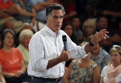 미국 공화당의 유력 대선 주자인 미트 롬니 전 매사추세츠 주지사가 14일(현지시간) 뉴햄프셔에서 연설하고 있다. 그는 미국의 디폴트(채무불이행) 위기를 의식한 듯 “미국을 믿자”고 강조했다. 뉴햄프셔/로이터연합