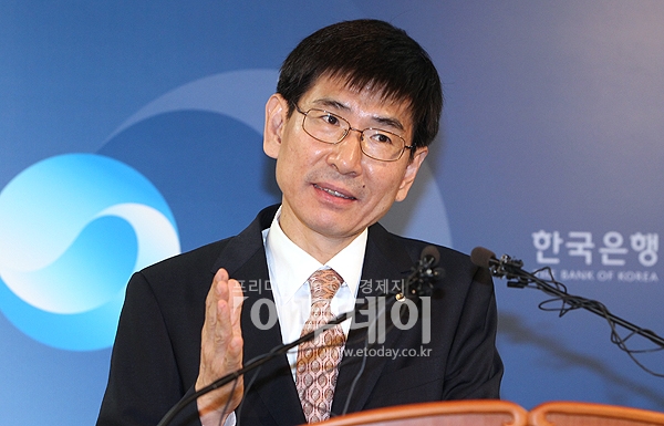 이상우 한국은행 조사국장이 15일 오전 서울 남대문로 한국은행에서 2011년 하반기 경제전망을 발표 하고 있다. 이날 한국은행은 소비자물가 상승률 전망치를 4%로 상향 조정했다.