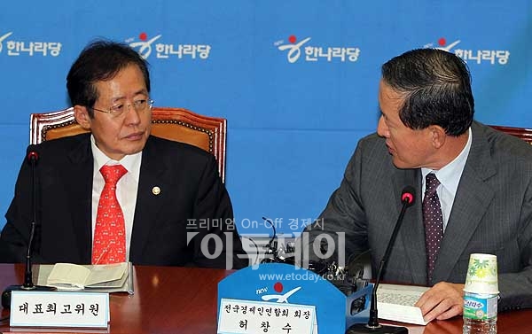 [포토]눈 마주친 홍준표 대표와 허창수 회장