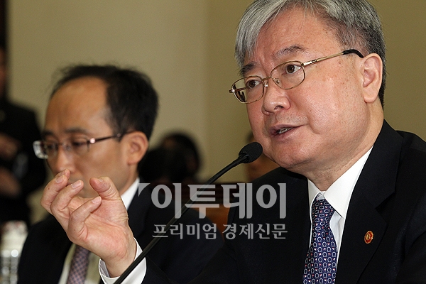 김석동 금융위원장이 20일 오전 여의도 국회 정무위원회에서 진행된 금융위원회 국정감사에 참석해 의원들의 질의에 답하고 있다.