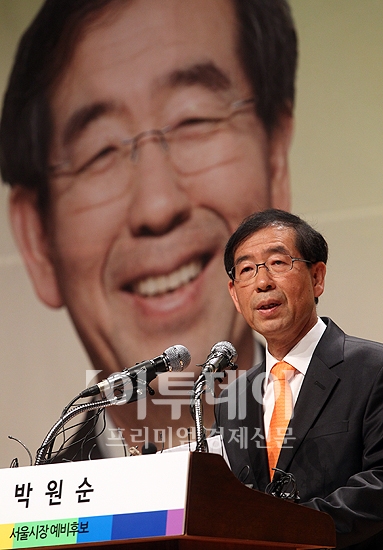 박원순 변호사가 21일 오전 효창동 백범기념관에서 기자회견을 열고 10·26 보궐선거 서울시장 출마를 공식 선언하고 있다.