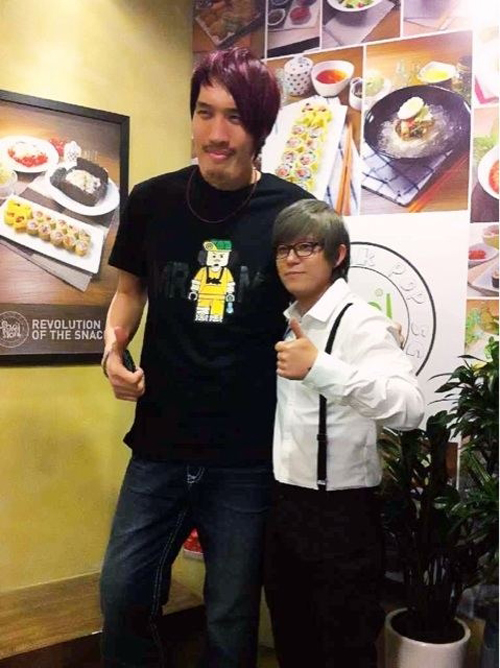 사진 속 두 사람은 식당을 배경으로 다정한 포즈를 취하고 카메라를 응시하고 있다. 몸집과 키, 얼굴 크기가 두배가량 차이가 나는 모습으로 마치 아버지와 아들같은 부위기다.