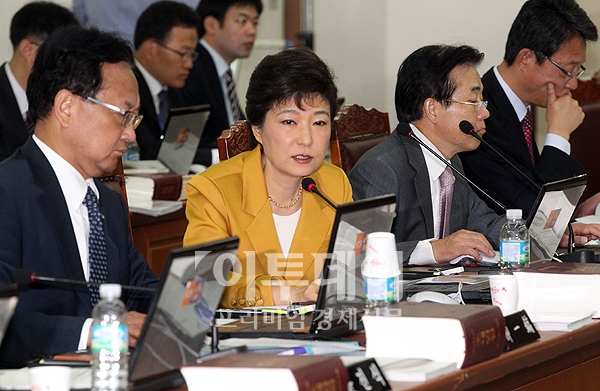 한나라당 박근혜 전 대표가 26일 오전 종로구 수송동 서울지방국세청에서 열린 기획재정위의 국세청 국정감사에 참석해 이현동 국세청장에게 질의하고 있다.