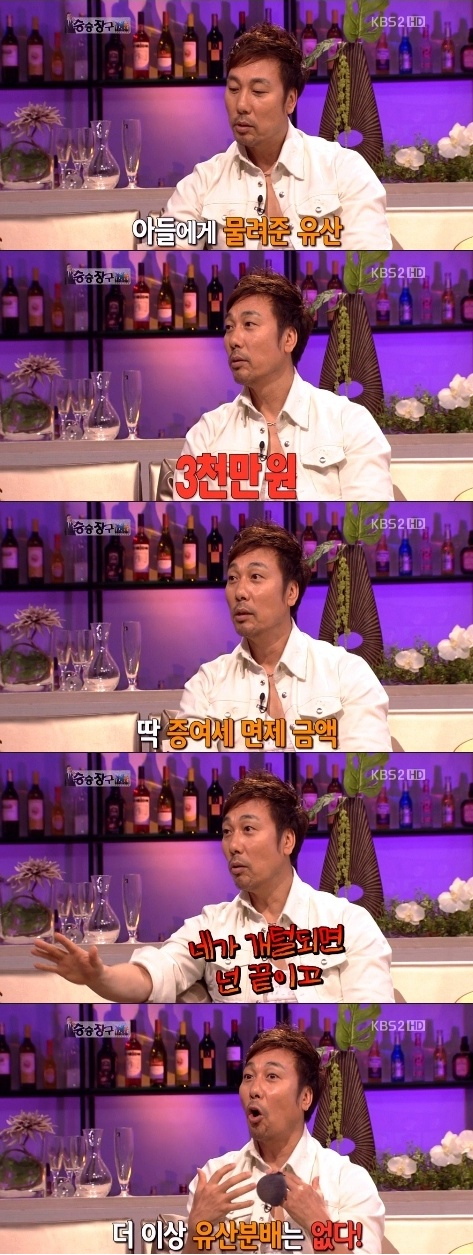 그는 "나는 이미 아들에게 유산으로 법적으로 증여세 안 내도 된 기본적인 자금 3000만원을 벌써 줬고 이제 아들에게 줄 것은 없다"며 "앞으로 그 돈을 잘 관리해서 아버지에게 용돈 좀 주라고 했다"고 말했다.
