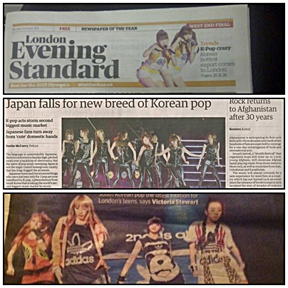영국에서 가장 유명한 런던 이브닝 스텐다드 신문의 1면 상단에 소녀시대의 두 멤버의 모습이 담겨있다. 글쓴이는 이어 지난달 9월 30일 영국의 가디언지에 실린 한류기사 속의 소녀시대 커버사진을 올렸다.