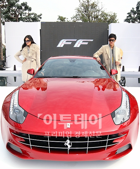 페라리 공식 수입사 (주)FMK는 5일 오전 장춘동 반얀트리클럽앤스파서울에서 신차‘FF’ 런칭 행사를 열고 본격적인 국내 판매를 시작했다. FF는 ‘페라리 포(Ferrari Four)’ 의 약자로 4인승 4륜구동을 의미하며 12기통 6262cc 직분사 엔진 탑재로 8000RPM 에서 최고 출력 660마력을 발휘한다.