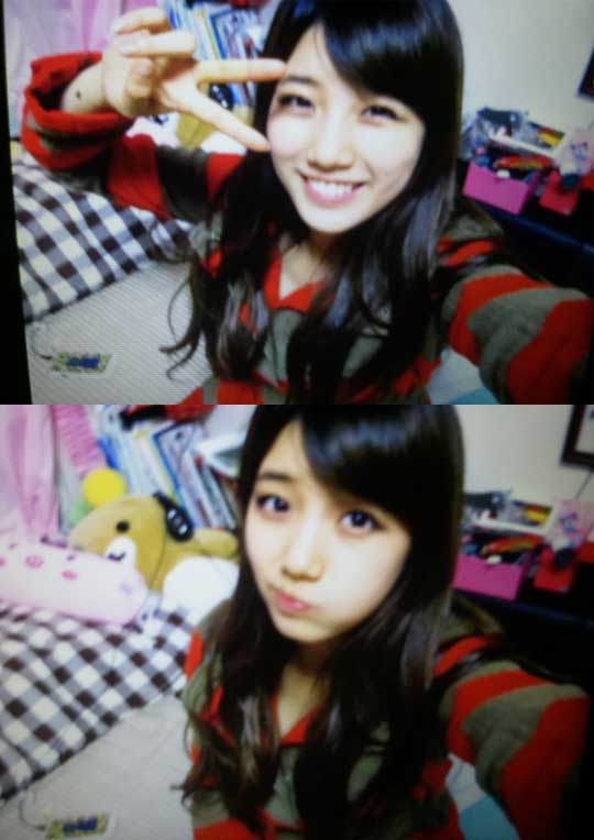 5일 오후 수지는 자신의 트위터에 "(괜히 셀카) 그만! 그냥 해맑아. 굿나잇"이라는 글과 함께 사진을 게시했다.